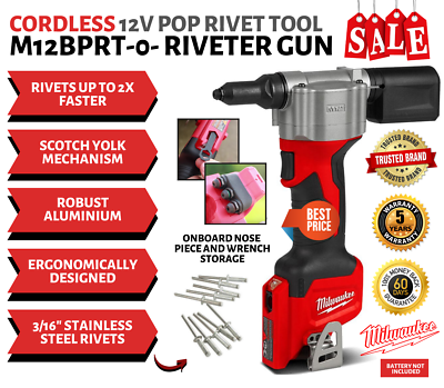 Milwaukee Cordless 12v Pop Rivet Tool Blind Hand Riveter Gun Skin M12bprt 0 Ebay